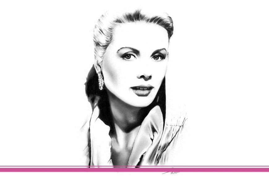 Minimale Portrait-Zeichnung der Schauspielerin Grace Kelly. Die Zeichnung ist Teil der “Hollywood Diven” Serie, genauso wie Greta Garbo, Marilyn Monroe und andere.