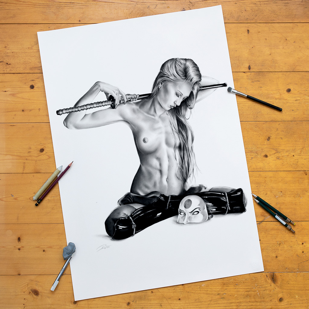 Die original Bleistiftzeichnung Katana ist Teil der Comic Serie.
