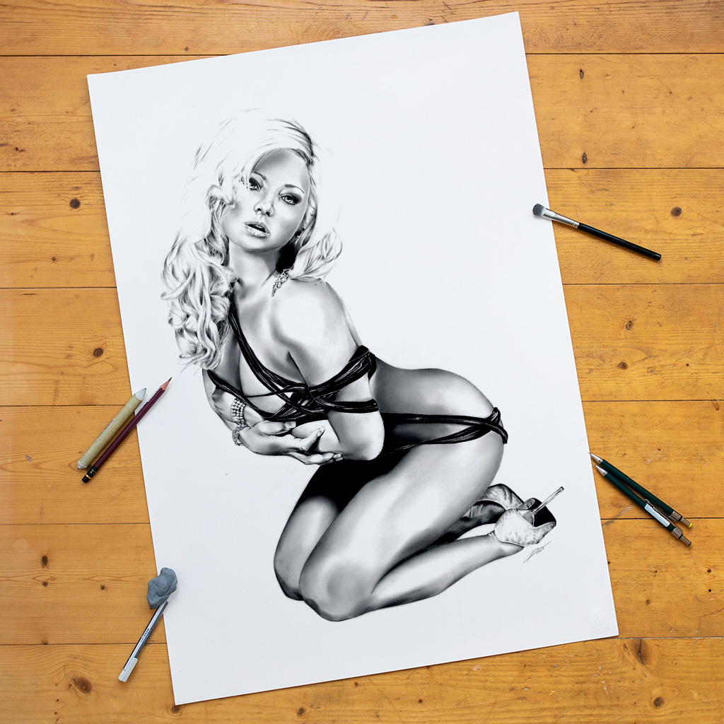 Die original Bleistiftzeichnung Tied Up ist Teil der Pin-Up Serie.